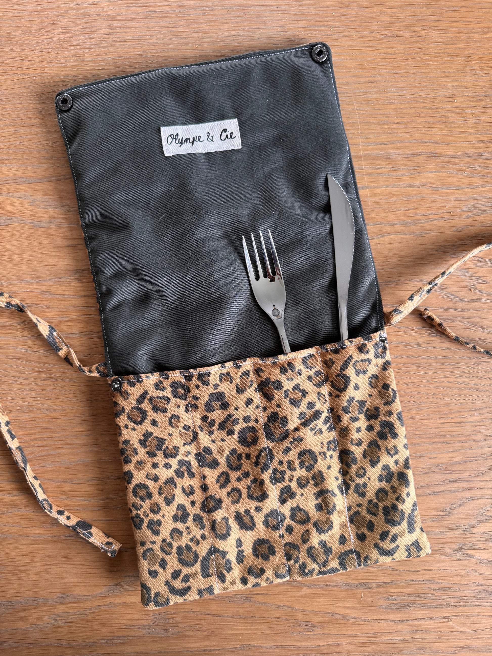 Il contient 4 compartiments pour les 4 couverts et se ferme grâce à des pressions et une sangle.